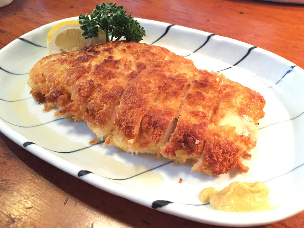 あれあれ、よくみると焼きかつにチーズが入っている!仁亭の焼きかつにはチーズが入っているみたいだね。ただなんというのだろう、とんかつでチーズといったらもっとオモたいイメージもあるんだけど、仁亭の焼きかつはサクッとしてて最後までさっくりいただけてしまうのだね。かつ部分はとにかくふんわりして、衣はサックサク。身も厚すぎず薄すぎず、女性にはもちろん男性にもちょうどよいという絶妙な食感なんだよね。添えてあるレモンとからしも組み合わせも間違いなかったよ、パセリもね。